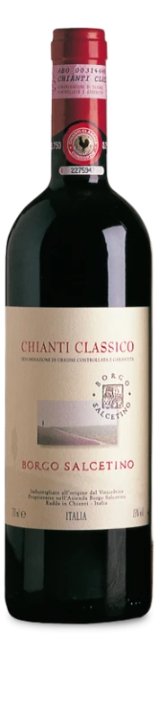 Das Weingut Borgo Salcetino ist wahrhaft eine Entdeckung und ein Geheimtipp zugleich. Wonach unendliche Weingüter jahrzehntelang streben ist Dorino Livon mit seinem Gespür für exzellente Lagen innerhalb weniger Jahre gelungen. Der Chianti Classico DOCG von Borgo Salcetino überzeugt durch seine kräftige Granatfarbe, das Bukett ist intensiv; im Gaumen fruchtig, vollmundig, mit guter Struktur und kräftigen, aber dennoch runden Tanninen.